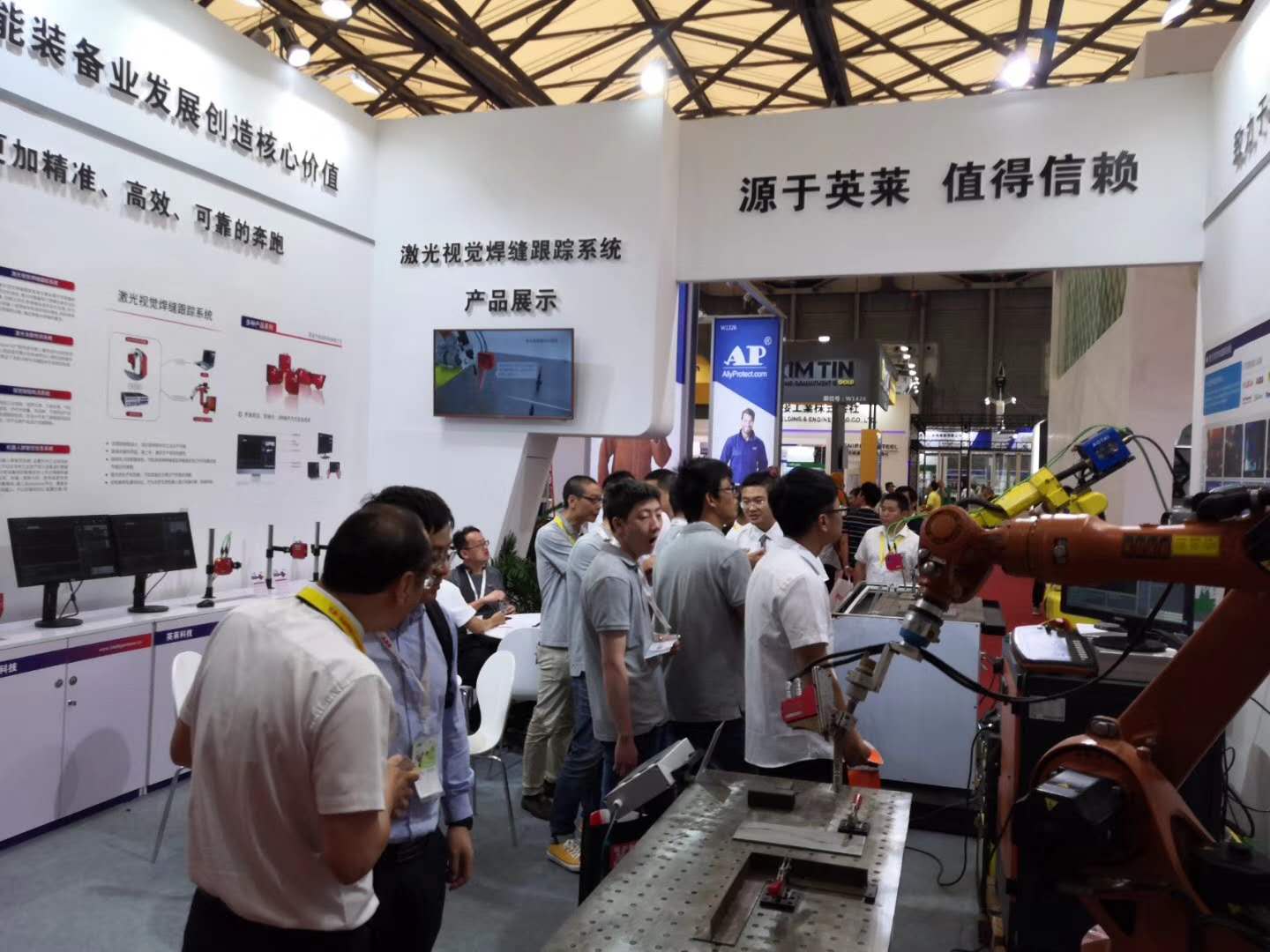 展示了自主研發(fā)的激光視覺焊縫跟蹤系統(tǒng),并現(xiàn)場演示了激光跟蹤自適應(yīng)焊接、S形曲線激光跟蹤、參數(shù)化變成激光尋位/跟蹤、激光尋位自適應(yīng)檢測、高反光無間隙檢測等新技術(shù)和產(chǎn)品,為展會填上了絢麗的一筆。