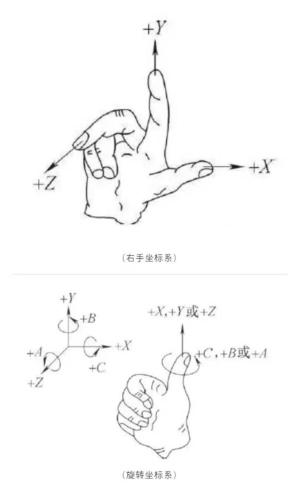 機(jī)器人的各種坐標(biāo)系都由正交的右手定則來(lái)決定,如下圖所示: