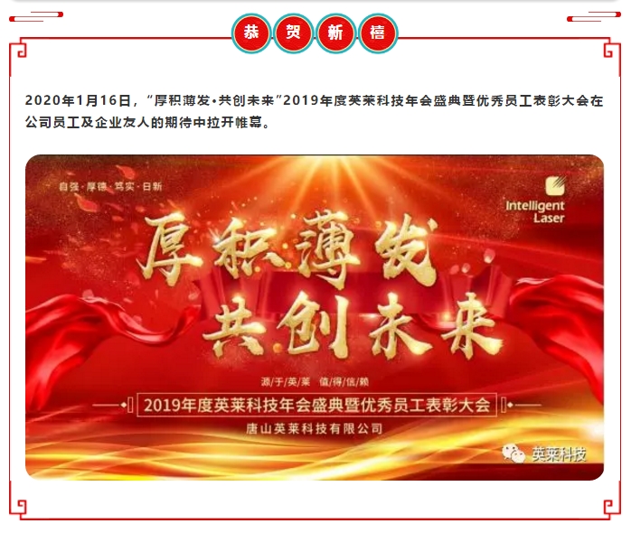 唐山英萊科技總經(jīng)理袁雷袁總致辭,回首2019年,展望2020年,相信在全體員工的共同努力下,唐山英萊科技有限公司、佛山英智萊有限公司、北京英智萊有限公司齊頭并進(jìn),2020年我們厚積薄發(fā)、共創(chuàng)未來!
