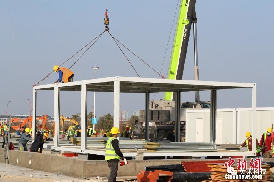 ● 1月29日,大年初五,300多個箱式板房骨架安裝完成,開始同步進行機電管線作業(yè)。