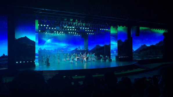 晚上大家乘車來到百里峽室外舞臺,觀看“野三坡文藝演出”,講述了中華民族的發(fā)展歷史