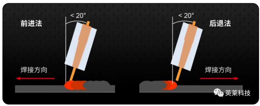 實(shí)芯焊絲一般采用前進(jìn)法焊接,藥芯焊絲一般采用后退法焊接。