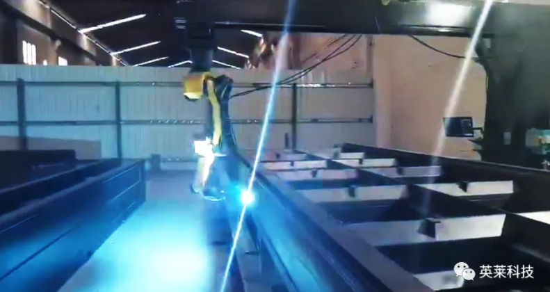 為現(xiàn)場FANUC機器人配套英萊激光視覺焊縫跟蹤系統(tǒng),應用焊縫跟蹤功能。系統(tǒng)可在焊接過程中,實時檢測焊縫信息變化,引導機器人修正焊接軌跡,大幅提高焊接精度。